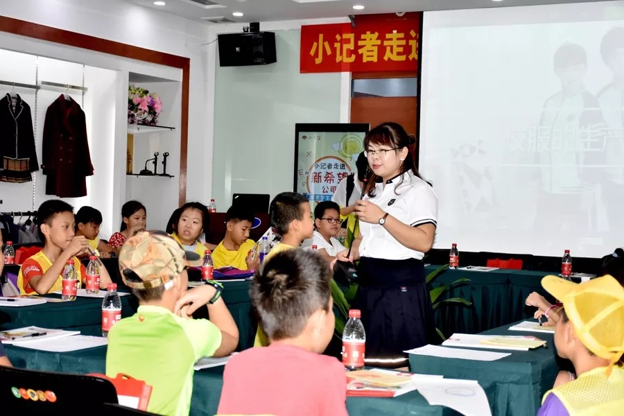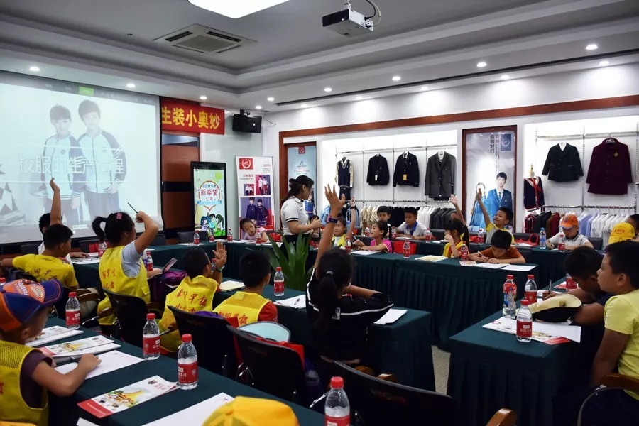 隨后,小記者們來(lái)到新希望學(xué)生裝生產(chǎn)企業(yè)百裕集團(tuán)營(yíng)銷(xiāo)中心,齊聚服裝展示廳共同深入探討學(xué)生裝知識(shí)。會(huì)上,小記者們共同觀(guān)看了“學(xué)生裝生產(chǎn)流程視頻”,并回顧往年“新希望”學(xué)生裝款式等內(nèi)容。