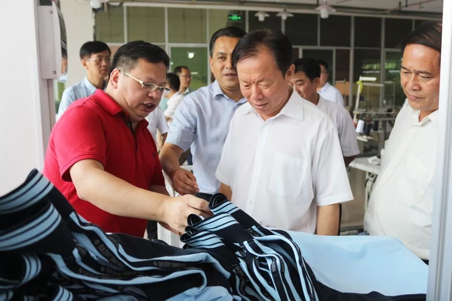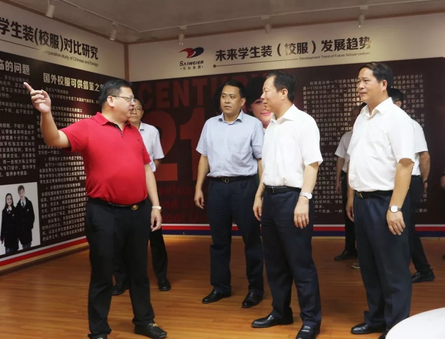 徐紹川來到百裕集團生產(chǎn)中心,先后參觀考察了黨建展廳、黨群文化活動中心、生產(chǎn)車間、校服文化展示中心等地,集團董事長許曲煌、百裕實業(yè)黨支部曾晏來書記等陪同考察。