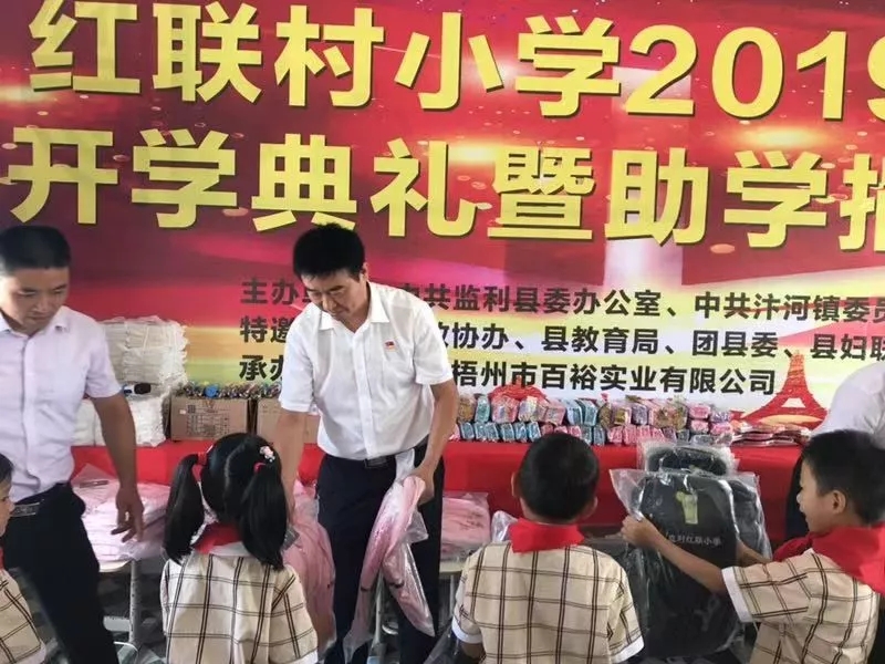 9月4日,監(jiān)利縣縣委辦公室攜手縣教育局,團縣委,縣婦聯(lián),縣服裝行業(yè)協(xié)會、百裕集團等部門領(lǐng)導(dǎo)、組織及愛心企業(yè)到汴河鎮(zhèn)紅聯(lián)村小學開展扶貧助學捐贈活動,為孩子們送去學習生活物資,縣政協(xié)副主席樊明波參加活動。