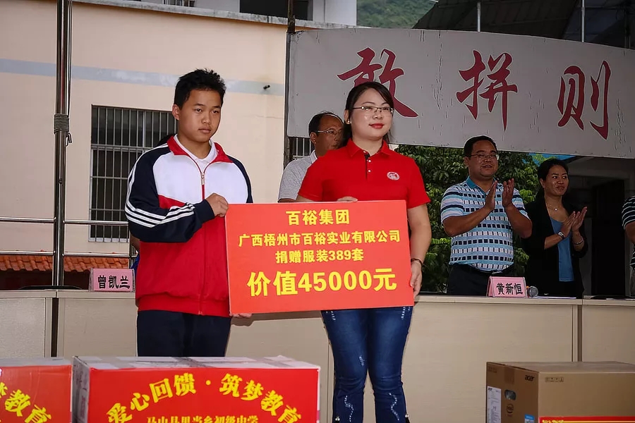 近日,由集團(tuán)市場總監(jiān)曾凱蘭、河池分公司總經(jīng)理林志煌帶隊的百裕公益小組,分別深入馬山、巴馬地區(qū),為馬山里當(dāng)初級中學(xué)、巴馬第五幼兒園的學(xué)生們捐贈衣物,表達(dá)企業(yè)的關(guān)懷。