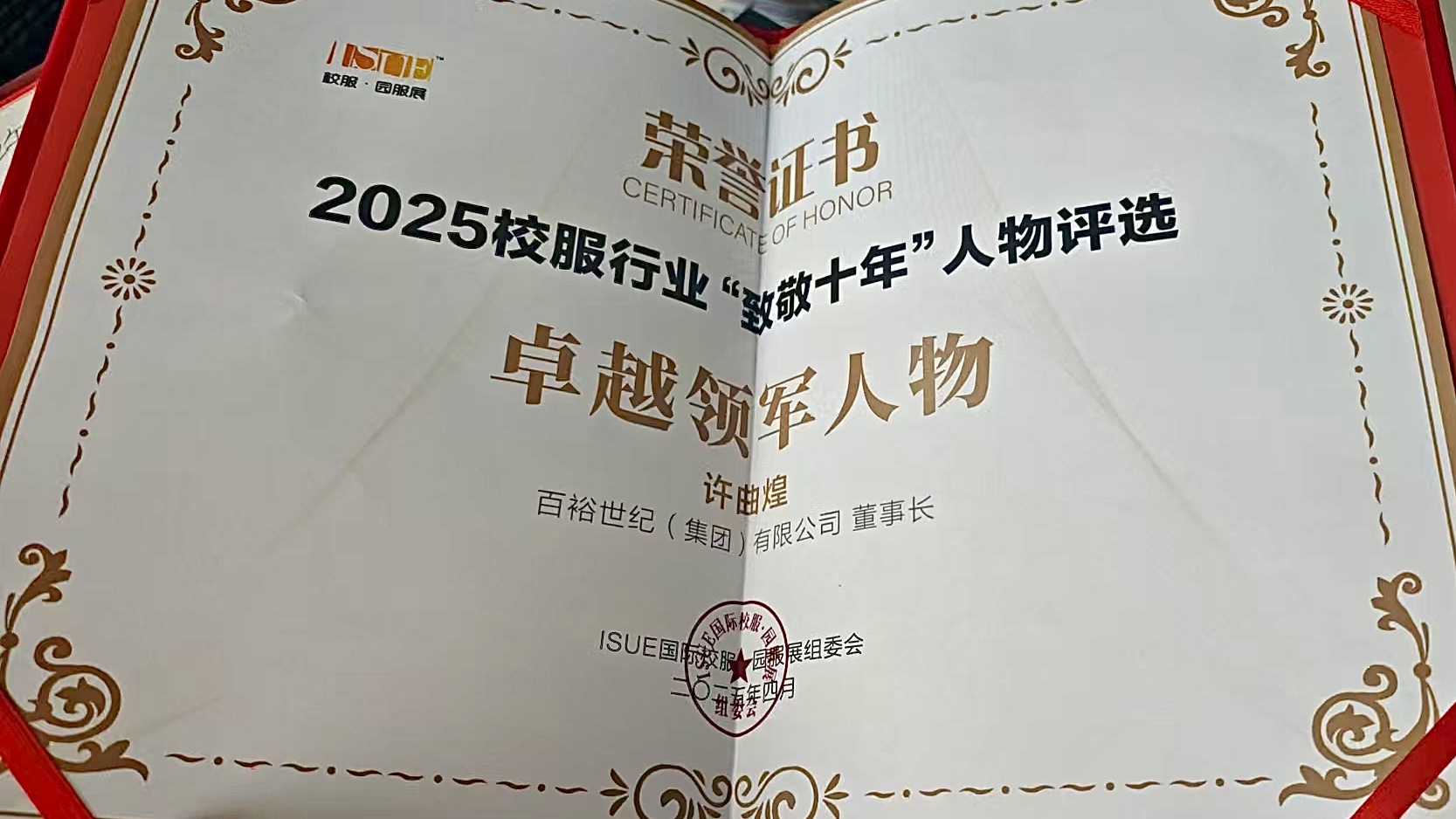 百裕集團(tuán)董事長(zhǎng)許曲煌先生憑借其在校服行業(yè)的卓越領(lǐng)導(dǎo)力、創(chuàng)新實(shí)踐與深遠(yuǎn)貢獻(xiàn),榮膺“致敬十年·卓越領(lǐng)軍人物”稱號(hào)。這一榮譽(yù)不僅是對(duì)其個(gè)人成就的高度認(rèn)可,更是對(duì)百裕集團(tuán)深耕校服領(lǐng)域、推動(dòng)行業(yè)高質(zhì)量發(fā)展的集體褒獎(jiǎng)。