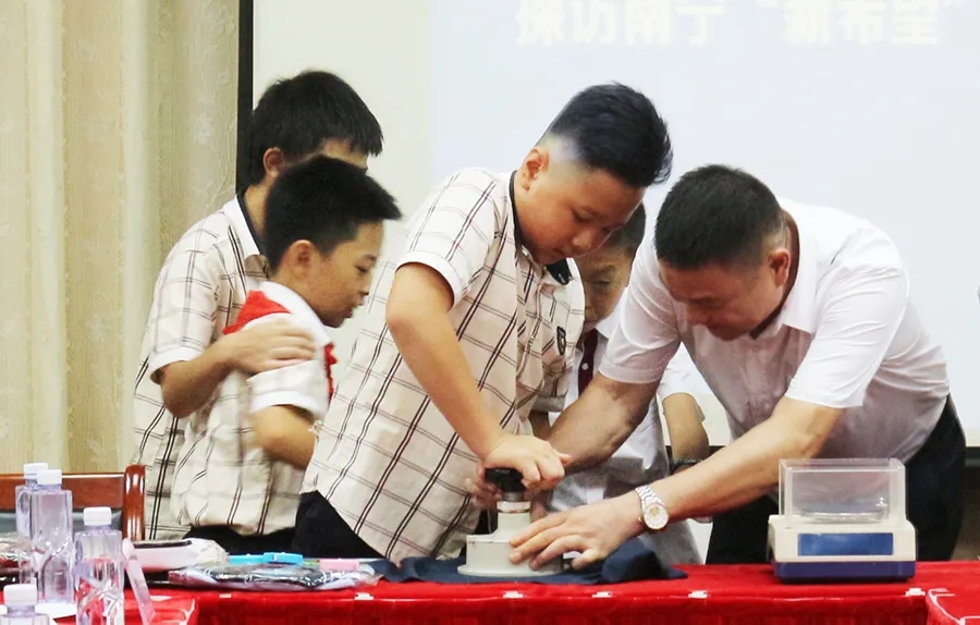 參觀的過(guò)程,小記者們對(duì)學(xué)生裝的生產(chǎn)有了一定的了解,但“小小服裝,大奧妙”,正版學(xué)生裝的奧妙在哪里?緊接著小記者與同行的家長(zhǎng)們以及新希望工作人員、百裕工作人員齊聚會(huì)議室,通過(guò)“做實(shí)驗(yàn)”、“答記者問(wèn)”、“實(shí)物展示”等形式,對(duì)新希望學(xué)生裝的奧秘進(jìn)一步深入探索。