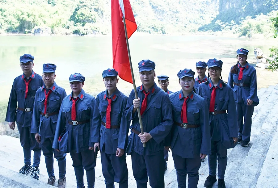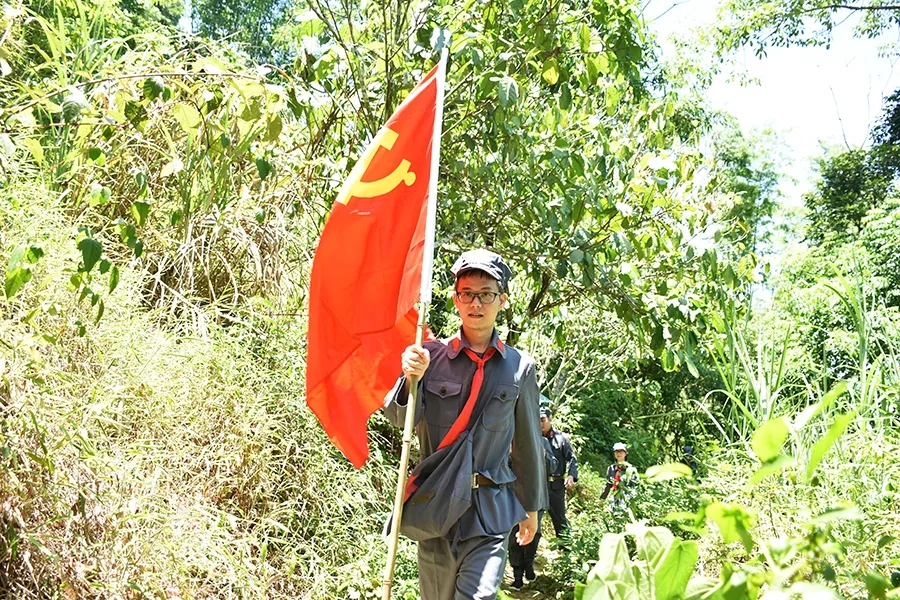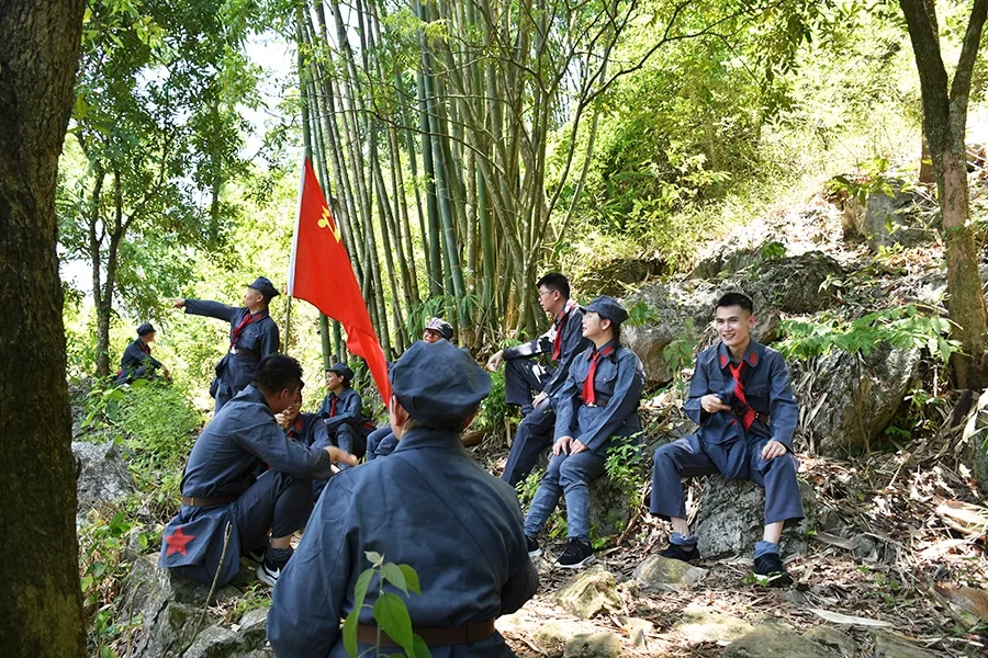 途中,黨員干部了解了鄧小平領(lǐng)導(dǎo)的紅八軍和左江革命委員會舉行反帝斗爭、張?jiān)埔萃驹谄今R勝利會師等龍州起義歷史故事,唱著紅歌,走在蜿蜒崎嶇的山路上,黨旗迎風(fēng)飄揚(yáng),黨員干部體驗(yàn)了革命的艱辛和困苦,同時(shí)感受紅軍無所畏懼、勇往直前的使命和擔(dān)當(dāng)。