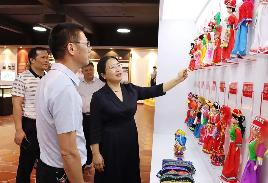 調(diào)研組參觀了百裕校服文化館,在參觀過程中,聽取了百裕世紀總經(jīng)理曾晏來關于文化館的設計理念及校服生產(chǎn)的情況匯報,詳細了解我公司在少數(shù)民族地區(qū)服裝設計理念,企業(yè)在生產(chǎn)經(jīng)營過程中,牢牢把握鑄牢中華民族共同體意識工作主線,注重企業(yè)文化建設各方面的活動及舉措。