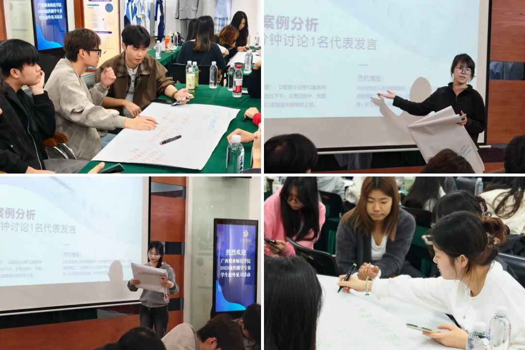 為增強(qiáng)見(jiàn)習(xí)活動(dòng)的互動(dòng)性,各小組圍繞企業(yè)提供的真實(shí)傳播案例展開(kāi)討論。之后由各小組代表上臺(tái)進(jìn)行匯報(bào)發(fā)言。這一環(huán)節(jié)鍛煉了學(xué)生的分析表達(dá)與團(tuán)隊(duì)協(xié)作能力。
