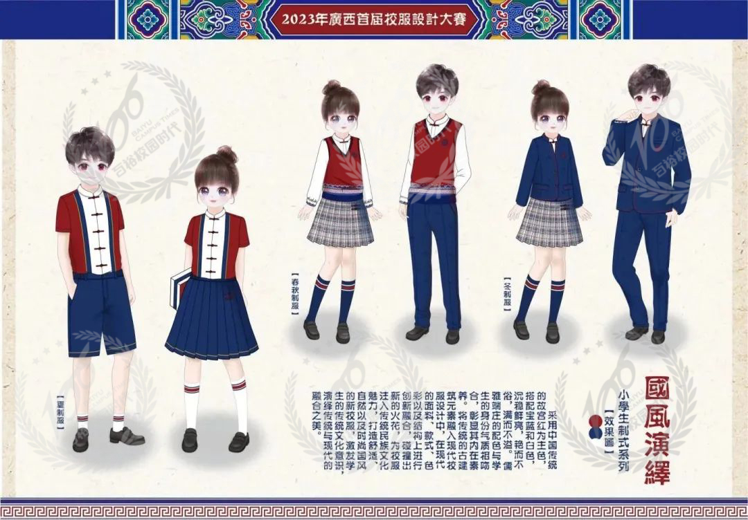百裕世紀(集團)有限公司的4個校園服飾作品成功入選第12屆廣西教育裝備展示會優(yōu)秀產(chǎn)品推薦目錄,分別是小學生運動服系列、小學生制服系列、中學生運動服系列、中學生制服系列。