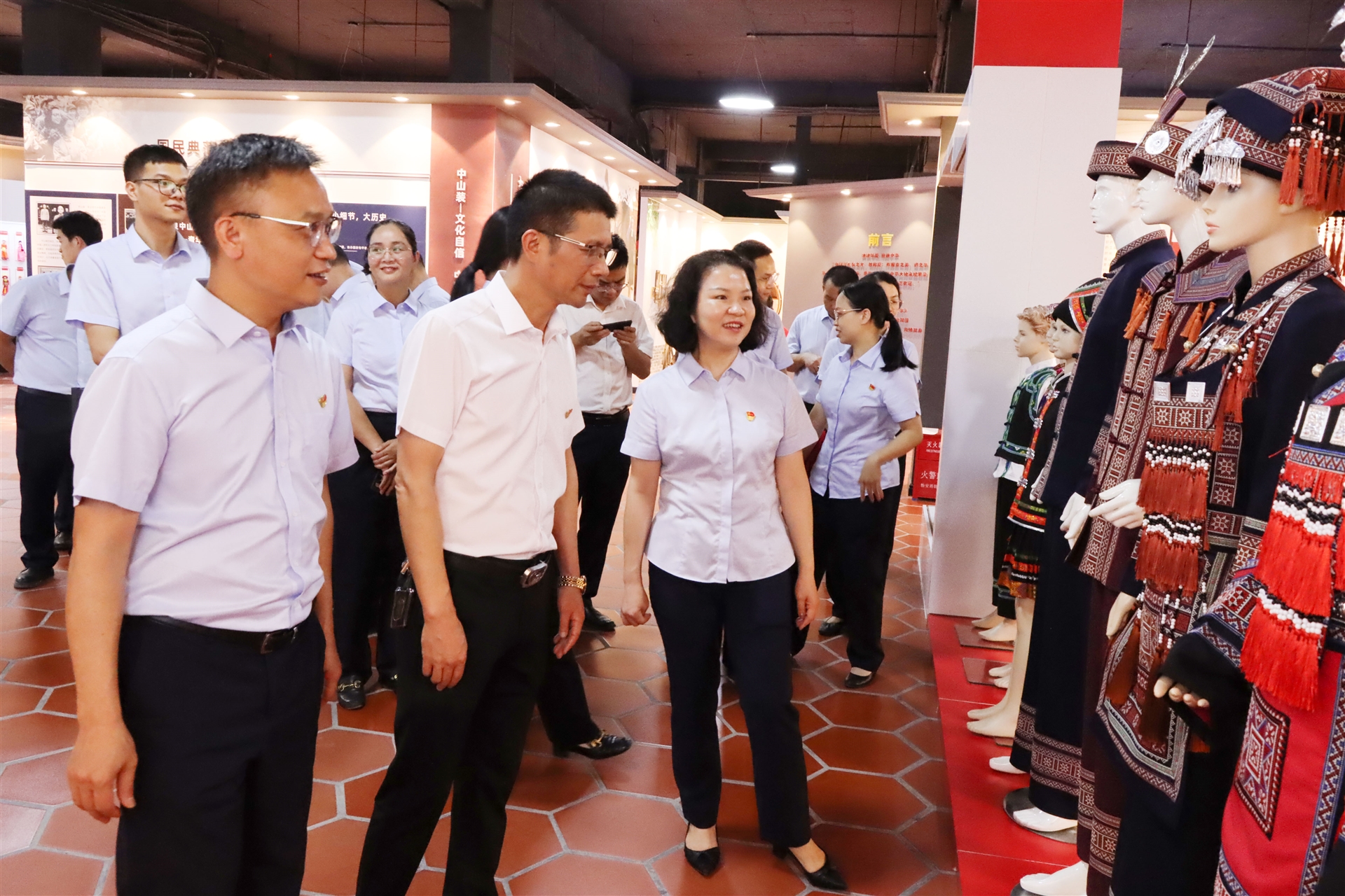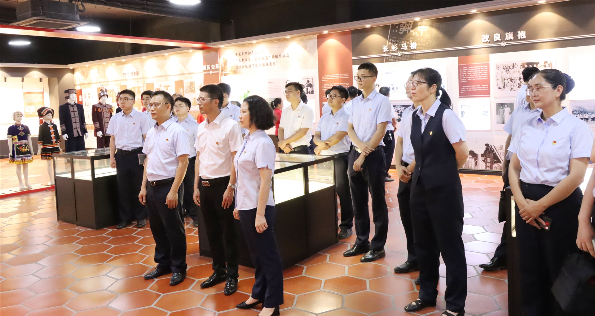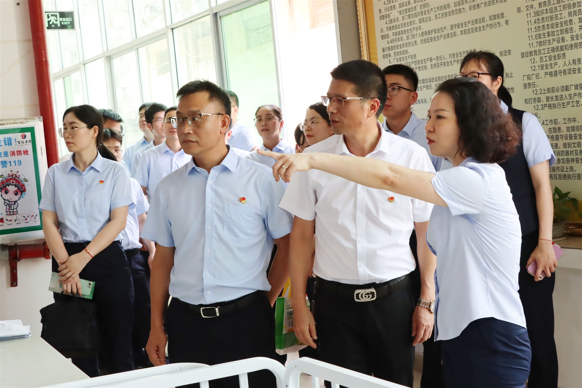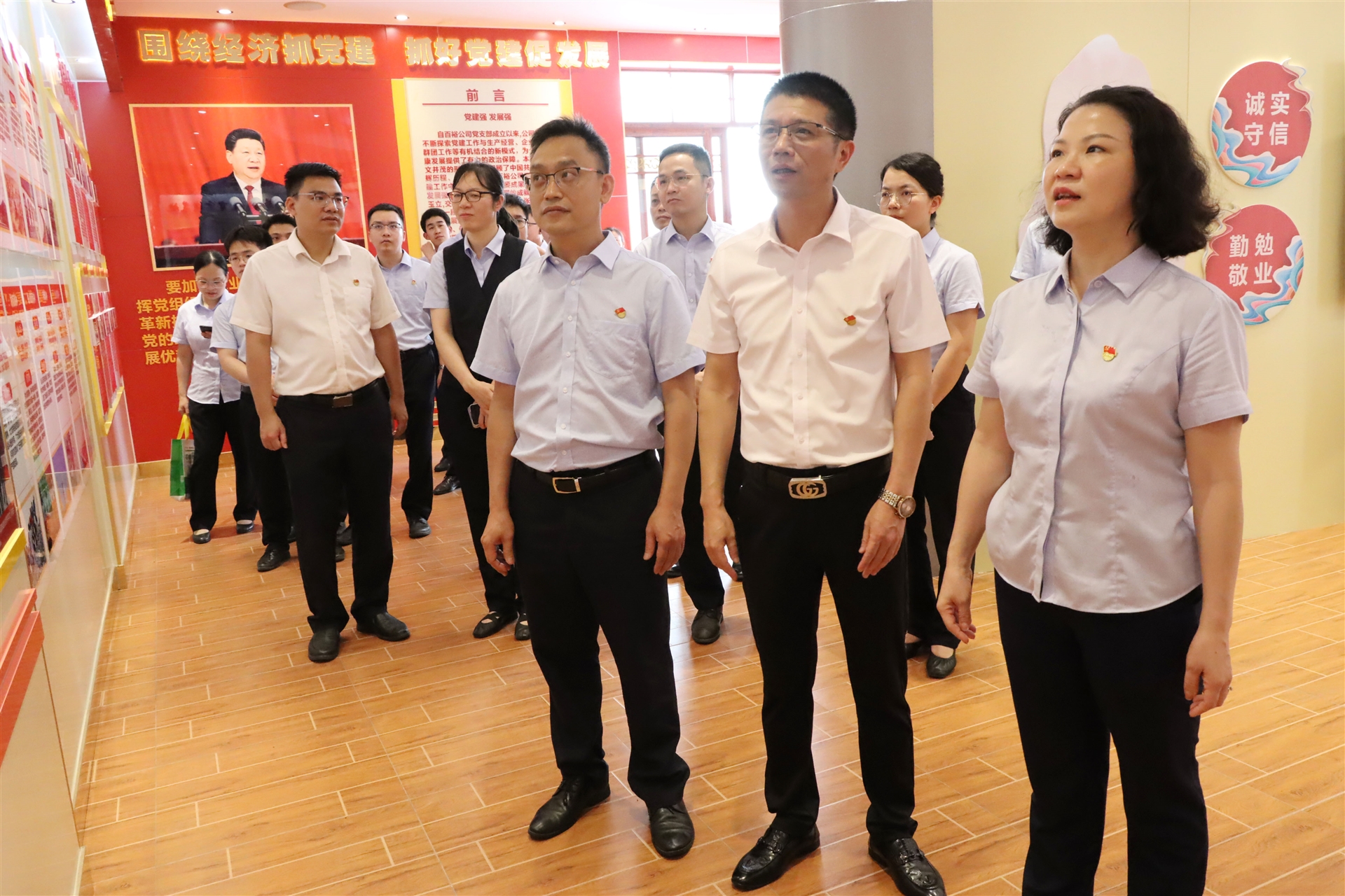 在曾晏來總經(jīng)理的帶領(lǐng)下,岑溪農(nóng)商行的黨員及青年員工代表參觀了百裕集團(tuán)的黨建文化長廊、黨建文化館、優(yōu)秀班組的生產(chǎn)線以及校服文化展廳,深入了解百裕集團(tuán)在積極發(fā)揮黨建引領(lǐng)的核心作用力,