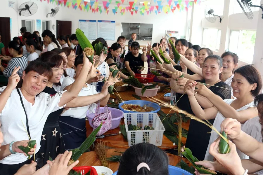 員工們歡聚一堂,包粽子,話家常,感受別樣的端午風(fēng)味。經(jīng)過大家的辛勤勞作,幾百個(gè)形態(tài)各異的粽子出爐了。空氣中散發(fā)著清爽甘醇的氣息,香噴噴的粽子味道飄滿整個(gè)食堂,大家迫不及待品嘗起來。
