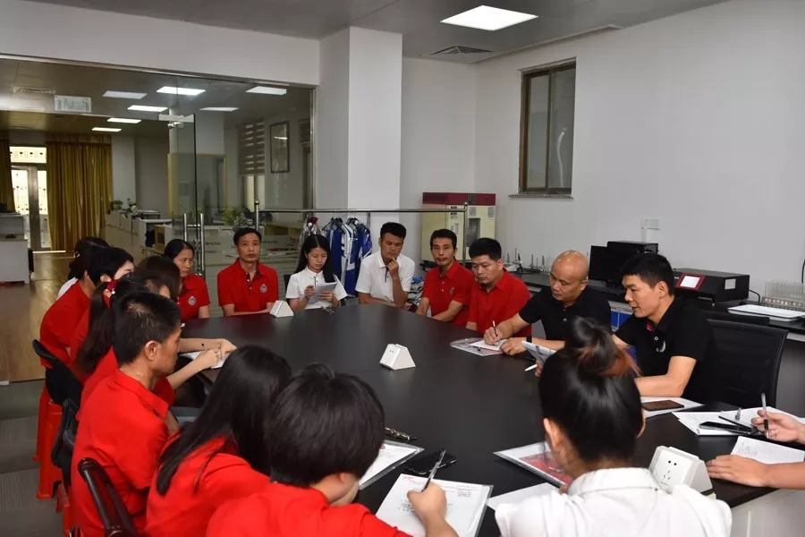 (生產小組深入車間,對生產技術、工作管理經驗、工價方案、生產計劃等進行交流、討論)