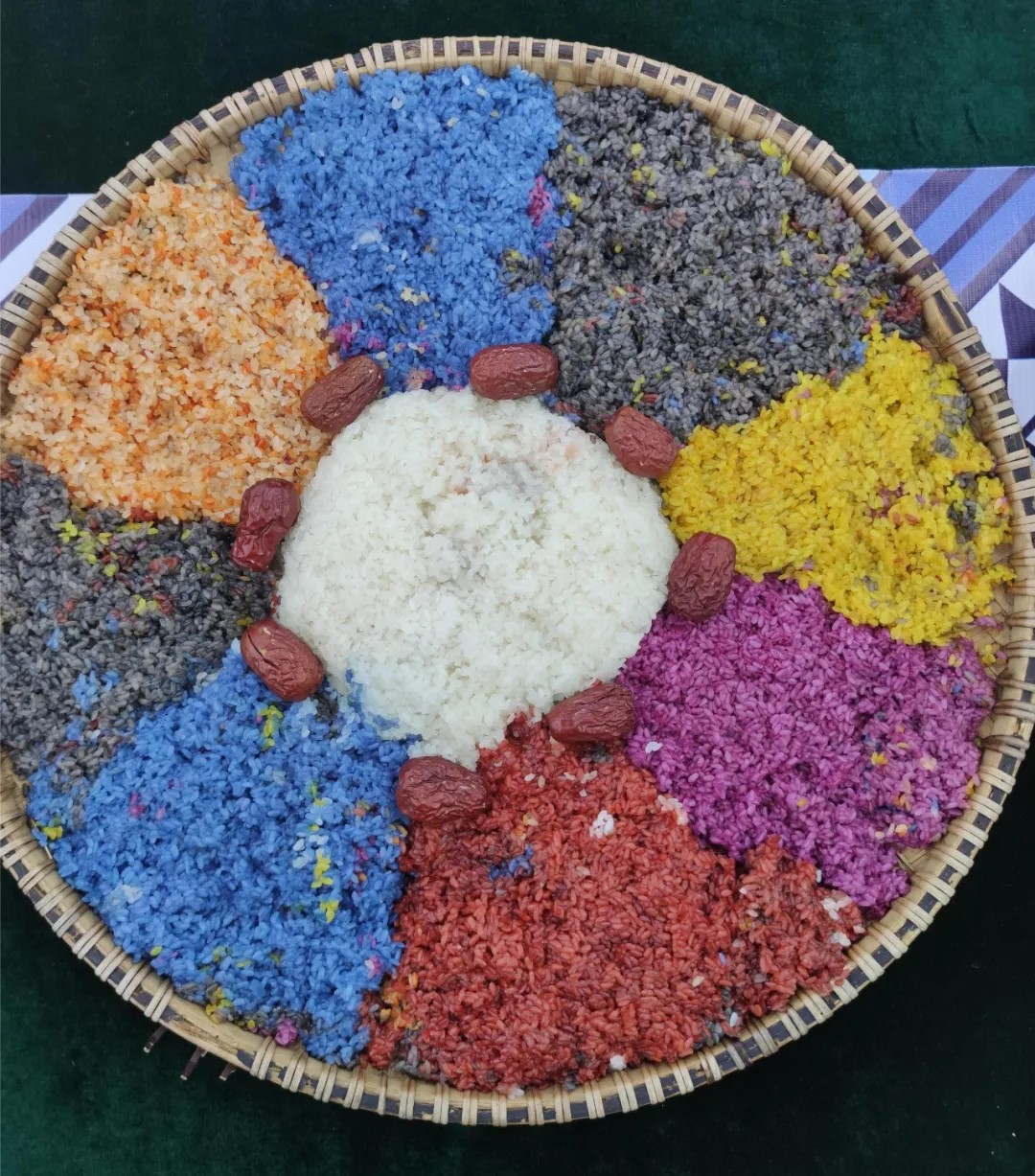 最后,大家開始品嘗特色美食,其中五色糯米飯深受歡迎,因糯米飯呈現(xiàn)5種色彩而得名,象征著吉祥如意、五谷豐登。